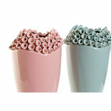 Vase DKD Home Decor Pink Turquoise Stoneware Mediterranean (2 pcs) (19 x 19 x 33 cm)