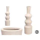 The 60 cm geometric vase from Gift Decor is a decorative piece made of white ceramic that stands out for its contemporary and elegant design. Its structure features defined geometric shapes that add a modern and sophisticated touch to any space, making it a versatile item for living rooms, dining areas, or entryways. Thanks to its 60-centimeter height, this vase stands out visually without being intrusive, allowing the placement of both natural and artificial flowers to complement the décor. The high-quality ceramic ensures a smooth and durable surface, as well as easy cleaning and maintenance. Its neutral white finish facilitates integration with various decorative styles, from minimalist settings to more elaborate and colorful spaces. This geometric design not only adds aesthetic value but also conveys a sense of order and visual balance. Due to its technical and aesthetic features, this vase is an ideal choice for those seeking a functional and tasteful decorative accessory that combines quality materials with a modern style proposal.