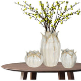Vase Home ESPRIT Cream Ceramic Leaf of a plant 19 x 19 x 33 cm