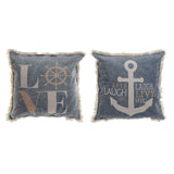 Cushion DKD Home Decor Blue White Navy Fringe (45 x 10 x 45 cm) (2 Units)