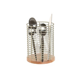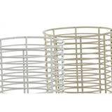 Cutlery basket Home ESPRIT Beige Grey Natural Metal Rubber wood 13,5 x 13,5 x 17 cm (2 Units)