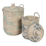 Set of Baskets Natural Grey Natural Fibre 38 x 38 x 58 cm (2 Pieces)