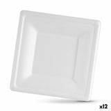 Plate set Algon Disposable White Sugar Cane Squared 16 cm (12 Units)