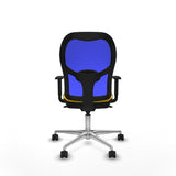 The Jorquera office chair by Piqueras y Crespo is an ergonomic solution designed to provide comfort and functionality during shifts of up to 8 hours of intensive use. This ergonomic chair supports a maximum weight of 120 Kg, making it suitable for a wide range of users. Its design features a fixed backrest with adjustable lumbar support that helps correct posture and promote back health, preventing discomfort during long work or study sessions. The base is made of polished aluminum with five spokes and a diameter of 720 mm, offering stability and durability, while the 65 mm nylon wheels with steel axles and pins ensure smooth and quiet movement on any surface. The chair includes 1D armrests that can be adjusted to provide additional support, and it is equipped with a five-position synchro mechanism that allows simultaneous adjustment of the recline angle of the backrest and seat, adapting to various ergonomic needs. The seat height is adjustable between 48 and 61 cm and is covered with a combination of breathable mesh and yellow faux leather, facilitating ventilation and giving a modern, elegant finish that fits easily into any professional or home environment. The 50 mm thick injected polyurethane foam with a density of 50 Kg/m3 ensures prolonged, firm comfort, reinforced internally with a honeycomb-shaped PVC structure for strength and durability. Its backrest without a headrest contributes to a functional and lightweight aesthetic, while the chrome finish on the lifting piston adds a premium look to the set. Additionally, this ergonomic chair for home and office complies with UNE-EN-1335 standards, ensuring certified ergonomic and safety requirements for professional use. The Jorquera is a practical choice for those seeking a balance between design, comfort, and technical features, ideal for remote work or traditional offices.