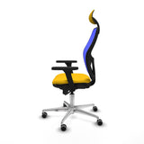 The 3D086G1 office chair by Piqueras y Crespo is an ergonomic solution designed for intensive teleworking, offering high comfort and adaptability. Built for 24-hour continuous use, this chair supports a maximum weight of 120 kg and features a sturdy frame with a polished aluminum 5-star base measuring 720 mm in diameter, and 65 mm rubber-coated nylon wheels specially suited for parquet floors, providing smooth and silent movement. Its 5-position synchro mechanism allows synchronized adjustment of the backrest and seat tilt, helping to find the optimal posture for long hours, while the height-adjustable seat, ranging from 48 to 61 cm max, adapts to different heights and workspaces. The 3D armrests offer multiple height and angle adjustments, improving forearm support and reducing muscle tension. For comfort, it includes a fixed backrest with a fixed headrest and 1D adjustable lumbar support, providing cervical and lumbar support to maintain a healthy posture. The seat has a reinforced PVC core with injected high-density polyurethane foam (50 mm, 50 Kg/m3), while the backrest combines a PVC outer frame with a breathable mesh/fabric finish that ensures proper ventilation, preventing heat buildup. The chair comes in a vibrant yellow finish, adding a touch of color and style to any workspace. It complies with UNE-EN-1335 standards, guaranteeing European quality and safety requirements. With compact dimensions that facilitate use in small spaces (total width 68 cm and maximum height 129 cm), this chair balances design, functionality, and durability. Overall, the Jorquera 3D086G1 chair is a practical and professional choice to enhance comfort and efficiency in work environments, especially for teleworking and offices needing durable, adjustable equipment.