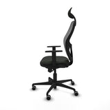 The Jorquera office chair by Piqueras y Crespo is designed to provide a high level of comfort and ergonomic support during intensive workdays of up to 8 hours. This office chair with headrest in black is built to support a maximum weight of 120 kg and combines features focused on adaptability and postural well-being. It includes a fixed headrest and an adjustable lumbar support that promote proper spinal alignment, reducing muscle fatigue and encouraging a healthy posture. Its fixed backrest offers stability, and the synchro mechanism with 5 tilt positions allows users to adjust the chair for greater comfort. Additionally, the seat height is adjustable within a range from 48 to 61 cm, adapting to different user heights and work surfaces. The 1D adjustable armrests provide extra arm support, helping to relax the shoulders and prevent tension. The structure features a nylon base with five spokes and 65 mm parquet wheels, ensuring smooth mobility and floor protection. The seat is made with high-density injected foam (50 mm and 50 Kg/m3) covered by a breathable mesh and fabric finish that promotes ventilation and prevents heat buildup during prolonged use. Weighing approximately 18 kg and certified under UNE-EN-1335, the Jorquera is a certified ergonomic alternative combining functionality and durability, ideal for both professional and home office environments. Its modern design, quality materials, and range of adjustments position it as an effective ergonomic chair that supports postural well-being in demanding workspaces.