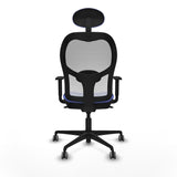 The office chair with headrest model 1D036G1 from Piqueras y Crespo is an ergonomic solution designed to provide comfort and functionality during long workdays, supporting intensive use of up to 8 hours daily. This model stands out for its adjustable height and seat height regulation, allowing adaptation to different needs and postures, while its 1D adjustable armrests provide proper arm support, reducing fatigue. The frame includes a fixed headrest that offers extra head support, combined with an adjustable lumbar support for correct spinal alignment. The backrest is fixed, but its breathable mesh design promotes air circulation, enhancing freshness and comfort in warm environments or during long sitting periods. The chair’s base is made of 5-spoke nylon with a 680 mm diameter, complemented by a black lift piston for vertical adjustments, and features 65 mm rubber-coated wheels designed for parquet floors, ensuring smooth and quiet movement. The seat has a reinforced PVC interior with injected high-density polyurethane foam (50 mm and 50 Kg/m3), guaranteeing firmness and comfort, while the mesh and fabric finish in light blue adds a modern, professional touch that fits perfectly in any office setting. Certified under UNE-EN-1335 standards and supporting up to 120 kg, this chair combines durability, ergonomics, and aesthetics in a design aimed at optimizing posture and reducing muscle tension during daily work. In short, the Jorquera chair is a functional and adjustable option for those seeking an ergonomic, breathable office seat with effective cervical support.