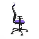 The Piqueras y Crespo 1D036G1 office chair is an ergonomic model designed to provide comfort and support during long workdays, ideal for intensive use of up to 8 hours. This Jorquera model stands out for its adjustable structure, which includes a fixed headrest and a 1D adjustable lumbar support, helping maintain correct posture and reduce cervical and lumbar discomfort. The chair features 1D adjustable arms that allow height and angle modification, enhancing ergonomics and adaptability for different users. Its height-adjustable seat ranges from 48 to 61 cm, with a total height between 121 and 129 cm, enabling precise customization for each user. The five-spoke nylon base with a 68 cm diameter, together with 65 mm rubber-coated parquet wheels, ensures smooth and silent mobility, suitable for all floor types while protecting the surface. The fixed backrest, designed with a PVC frame and upholstered in breathable lilac mesh, offers constant ventilation for comfort during extended use, while the seat combines a high-density injected polyurethane foam core (50 mm and 50 Kg/m3) with an outer reinforced plastic cover to ensure durability and resistance. Its maximum supported weight of 120 Kg accommodates a wide range of users without compromising stability or safety. The five-position synchro mechanism allows adjustment of the backrest and seat tilt to find the most comfortable and ergonomic working angle, helping improve posture and reduce fatigue. It meets UNE-EN-1335 certification and BIFMA standards, guaranteeing high quality and safety levels. The lilac finish adds a modern and attractive touch, combining functionality with style for work or study spaces. This ergonomic chair is a complete solution for those needing durable, adjustable seating with specific features that optimize ergonomics in professional environments.