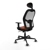 The Jorquera office chair by Piqueras y Crespo is an ergonomic solution designed to provide comfort and support during intensive workdays of up to 8 hours. Its structure includes a fixed headrest that offers constant cervical support, along with a 1D adjustable lumbar support that improves posture and reduces lower back fatigue. The chair features 1D armrests that facilitate proper arm support, helping to relieve tension in the shoulders and neck. Its synchro mechanism offers five reclining positions for the backrest and seat, allowing personalized adjustment that adapts to different working and resting postures. Additionally, it incorporates a high-density injected foam seat (50 mm and 50 Kg/m3) that ensures lasting comfort and shape recovery, while the backrest has a PVC frame that provides firmness and durability. The chair’s base is made of black nylon with 5 spokes and a diameter of 680 mm, providing stability and certified under the BIFMA standard, complemented by a lift piston to adjust the seat height between 48 and 61 cm, with an overall height adjustable between 121 and 129 cm. This chair is designed to support up to 120 kg and is equipped with 65 mm rubberized parquet wheels, ensuring smooth and silent movement on delicate surfaces. Its brown mesh/fabric finish combined with white details offers a modern and elegant design that fits well in any work environment. The Jorquera complies with the UNE-EN-1335 standard, guaranteeing quality and ergonomics. This chair represents a balanced combination of functionality, comfort, and durability for users who need a stable and comfortable seat throughout their workday.