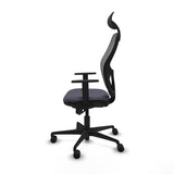 The Jorquera office chair from manufacturer Piqueras y Crespo, model 1D036N1, is designed to provide comfort and functionality during long workdays, suitable for intensive use of up to 8 hours daily. This chair features a fixed headrest that offers extra neck support, enhancing overall user ergonomics. It has a fixed backrest and 1D adjustable arms that provide proper and personalized support, while its seat and backrest have a breathable dark grey high-quality mesh design, ensuring good air circulation for freshness during extended use. The synchro mechanism, with 5 tilt positions and lock, allows posture adjustment to maximize comfort and reduce fatigue. The seat height is adjustable, ranging from 48 cm to 61 cm, adapting to different users and desk types. With a sturdy frame and a nylon base with 5 spokes and 680 mm diameter, equipped with 65 mm nylon wheels with steel axle and pin for durability, this chair supports a maximum weight of 120 kg, offering stability and long-lasting use. The seat interior combines injected polyurethane foam with a density of 50 kg/m³ and a thickness of 50 mm, providing effective comfort without losing firmness, while the fabric finish allows easy integration in professional environments. Certified under the UNE-EN-1335 standard and BIFMA component standard, the Jorquera is a balanced office chair option with ergonomic features and a sober design, ideal for those needing an adaptable, breathable chair with lumbar support to improve the workstation experience. This chair combines functionality and quality for office settings that prioritize postural health and comfort during long hours.
