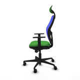The Jorquera office chair with headrest by Piqueras y Crespo is an ergonomic solution designed for intensive use of up to 8 hours daily, aimed at providing support, comfort, and adaptability for users up to 120 kg. It features a structure equipped with a fixed headrest that offers additional cervical support, essential for maintaining correct posture during long work hours. The chair includes a system of 1D height-adjustable armrests, which provide proper arm support and help reduce tension in shoulders and neck. Its synchronised mechanism with five recline positions allows the backrest and seat to tilt simultaneously, adapting to various ergonomic postures to relieve fatigue and improve circulation. The fixed backrest with adjustable lumbar support ensures optimal spinal alignment, crucial to prevent discomfort and enhance overall ergonomics. With a black nylon five-star base of 680 mm diameter and 65 mm nylon casters that guarantee smooth and silent movement, this chair offers stable and comfortable mobility within the workspace. The seat, with a reinforced PVC core and injected high-density polyurethane foam (50 Kg/m³) of 50 mm thickness, provides lasting cushioning that adapts to the body without losing firmness. The breathable green mesh upholstery contributes to constant ventilation, keeping freshness even in warm environments or during prolonged use. Its total adjustable height ranges from 121 to 129 cm, and the seat height adjusts from 48 to 61 cm, allowing effective customization for different users and desks. Certified under UNE-EN-1335 standard and with a modern finish, the Jorquera chair combines functionality and style, making it a suitable choice for those seeking a balance between ergonomics, durability, and office furniture design. This chair is a solid alternative among ergonomic desk chairs, aimed at optimizing posture and comfort in professional settings.