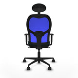 The Jorquera office chair model 1D036N1 by Piqueras y Crespo is an ergonomic option designed to provide comfort and support during long work sessions of up to 8 continuous hours. Intended for spaces requiring focus and comfort, this chair stands out for its functional structure in bottle green and its sturdy 5-spoke nylon base with a diameter of 680 mm, certified under the UNE-EN-1335 standard. It supports a maximum weight of 120 kg, ensuring stability and durability, while its 1D armrests offer additional support for a more relaxed posture. It features a 5-position synchro mechanism that allows simultaneous adjustment of the backrest and seat tilt, combined with height-adjustable seating for flexibility to suit different users and preferences. Its fixed headrest and adjustable lumbar support help maintain an ergonomic posture, reducing fatigue and lumbar tension during prolonged use. The fixed backrest is made with a PVC frame and covered with a blend of breathable mesh and faux leather, promoting ventilation and preventing heat buildup. The seat’s injected polyurethane foam of 50 mm thickness and 50 Kg/m³ density provides exceptional comfort, while the outer plastic honeycomb reinforcement offers strength and durability. The chair moves easily thanks to its 65 mm nylon wheels with steel axles, ensuring smooth and quiet movement on any surface. With dimensions including a total width of 68 cm and a maximum height of 129 cm, it adapts flexibly to various workspaces. The combination of these features makes the Jorquera chair a reliable and ergonomic product, ideal for offices, studios, and any work environment requiring a practical and comfortable solution for long desk sessions.