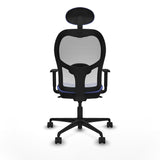 The Piqueras y Crespo office chair with headrest model 1D036N1 is an ergonomic solution designed to provide comfort and functionality during long work shifts of up to 8 hours of intensive use. This chair features a fixed headrest that offers additional cervical support, complemented by an adjustable lumbar support that helps maintain a correct and healthy posture. The seat is made with 50 mm injected foam with a density of 50 Kg/m3, ensuring comfortable body adaptation, while the breathable mesh surface promotes ventilation and prevents heat buildup, ideal for office environments. Its structure includes a fixed backrest with an outer PVC frame and a reinforced seat with a PVC interior and honeycomb structure for greater durability and strength, supporting up to 120 kg maximum weight. The seat height is adjustable between 48 and 61 cm, allowing adaptation to different heights, and the total height ranges from 121 to 129 cm. The 1D height-adjustable armrests provide additional arm support, helping reduce tension in shoulders and neck. It also features a 5-position Synchro mechanism that allows combined adjustment of the backrest and seat tilt to find the most comfortable posture for the task. The base consists of 5 nylon spokes with a diameter of 680 mm and 65 mm nylon wheels, enabling smooth and quiet movement on hard surfaces. This chair comes in a light blue color that adds a modern and elegant touch, suitable for offices with contemporary design. Finally, it complies with the UNE-EN-1335 standard and holds the BIFMA certification, ensuring quality and safety. Overall, the Piqueras y Crespo 1D036N1 chair is a balanced choice for users seeking comfort, personalized adjustment, and durability for demanding workspaces.