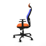 The office chair with headrest 1D036N1 from the renowned brand Piqueras y Crespo is an outstanding example of ergonomics and functionality, specially designed to support long work shifts of up to 8 continuous hours. This model combines a modern and attractive design in orange color with materials aimed at providing great comfort and durability, such as its seat with high-density injected foam (50 mm and 50 Kg/m³) that adapts to the body shape to ensure a comfortable and firm experience. It features a fixed headrest that offers additional cervical support, relieving neck tension during prolonged work. Its backrest, although fixed, is designed to provide stability and constant support, while the 1D adjustable lumbar support allows customizing lumbar support according to individual needs, helping prevent discomfort and postural injuries. The chair includes 1D arms, providing proper forearm support and helping maintain a relaxed posture, reducing fatigue. Additionally, its 5-position synchro mechanism allows simultaneous but differentiated tilting of the backrest and seat, adapting to various postures and movements for comfortable customization throughout the day. The seat height is fully adjustable, ranging from 48 to 61 cm, allowing ergonomic adaptation to each user’s height and work desk. Its nylon base structure has five spokes and 65 mm nylon wheels that ensure smooth and silent mobility on different surfaces. The fabric/mesh finish promotes breathability, creating a cool and comfortable environment, avoiding heat buildup or sweating. The chair supports a maximum weight of 120 kg and is certified according to UNE-EN-1335 and BIFMA standards, guaranteeing high quality and safety levels. With generous dimensions offering a 48 cm wide seat and a total width of 68 cm, this chair is ideal for office and laboratory spaces where design, durability, and ergonomics must be combined in a single product. In short, this model represents a solid and versatile option for those needing an ergonomic office chair that optimizes postural comfort without sacrificing functionality or aesthetics.