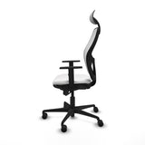 The Jorquera office chair from manufacturer Piqueras y Crespo is an ergonomic model designed to provide comfort and support during intensive work shifts of up to 8 hours, with a maximum weight capacity of 120 kg. Its structure features a fixed backrest combined with a fixed headrest that enhances cervical support and an adjustable lumbar support, helping maintain a healthy posture and reduce muscle tension. This chair stands out for its synchro mechanism with 5 positions, which allows adjustment of the seat and backrest tilt, adapting to the user’s natural movement for greater comfort. The 1D arms offer height adjustment, increasing ergonomics and enabling a more relaxed and correct arm position during work. It has an adjustable seat height ranging from 48 to 61 cm, and a total height varying between 121 and 129 cm, to fit different users and desks. The chair is made with a 5-star nylon base, 680 mm diameter in black, equipped with 65 mm nylon wheels for smooth, quiet, and durable movement, ideal for professional environments. The seat includes an internal PVC honeycomb reinforcement structure filled with injected polyurethane foam with a density of 50 kg/m3 and 50 mm thickness, providing a firm yet comfortable surface. Its outer finish combines breathable mesh that promotes ventilation to avoid heat buildup, with reinforced plastic elements ensuring durability. The white color offers a modern and clean design that easily integrates into any work setting. Additionally, it complies with the European standard UNE-EN-1335 and holds BIFMA certification, reflecting its quality and compliance with international standards. With an approximate total weight of 18 kg, this chair offers stability without sacrificing mobility and is aimed at users who value advanced ergonomic features, easy adjustment, and materials that ensure durability and comfort during long hours at the desk. In short, the Jorquera is a complete and technically refined option among white office chairs with headrest, specially designed to improve the daily work experience with a focus on postural health.