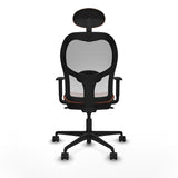 The Jorquera office chair by manufacturer Piqueras y Crespo, model 1D036N1, is designed to provide optimal support and comfort during work shifts of up to 8 hours, with a maximum load capacity of 120 kg. Its structure includes a 5-spoke nylon base with a 680 mm diameter and 65 mm nylon wheels, ensuring smooth and quiet mobility. This upholstered chair combines functionality and ergonomics through a synchronised mechanism with 5-position lock, allowing simultaneous adjustment of the backrest and seat tilt to suit different postures. It also offers seat height adjustment ranging from 48 cm to 61 cm, complementing the total height adjustment between 121 cm and 129 cm. It features 1D armrests to enhance comfort and promote an ergonomic position, along with a fixed headrest that provides extra neck support and an adjustable lumbar support to maintain proper posture during work. The seat and backrest are covered in mesh and fabric, with high-density injected foam (50 mm thick and 50 Kg/m3) that ensures comfort and durability for daily use. The seat has a reinforced internal structure with PVC and an injected polyurethane foam core, finished externally with 1 mm plastic for strength and stability. The fixed backrest includes an outer PVC frame that contributes to the chair’s overall stability. Its design, available in brown and white colors, offers an elegant finish adaptable to various professional environments. It complies with the UNE-EN-1335 certification and BIFMA standards, guaranteeing quality and safety. The Jorquera chair combines essential features such as height adjustability, synchronized tilt, and functional armrests, making it a practical and ergonomic solution for offices requiring comfort, durability, and reliable performance in modern workspaces.