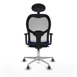 The Jorquera office chair with headrest by Piqueras y Crespo is an ergonomic and functional option designed for intensive use of up to 8 hours daily. Created to provide comfort and support in professional settings, this task chair allows precise seat height adjustment, ranging from 48 cm to 61 cm, adapting to different users. Its frame includes a fixed headrest that offers extra neck support, promoting correct posture alignment, while the fixed backrest ensures stability. The 1D adjustable lumbar support helps reduce lower back tension, a key feature for maintaining a healthy position during long workdays. Equipped with 1D adjustable armrests, it offers greater arm comfort and proper posture at the workstation. The seat and backrest are made of a combination of mesh and breathable fabric, allowing proper ventilation and preventing heat buildup, increasing comfort over extended periods. The base is constructed from polished aluminum with 5 spokes and a 720 mm diameter, providing strength and durability, and features 65 mm rubber-coated nylon wheels specially designed to protect delicate floors such as parquet, facilitating mobility without damage. The seat includes an internal system of PVC honeycomb reinforcement and high-density injected polyurethane foam (50 mm and 50 Kg/m³), ensuring optimal cushioning and resistance to prolonged use. It supports a maximum capacity of 120 kg, adapting to most users without losing stability or comfort. The blue design adds a modern and professional touch, while the synchro-tilt mechanism with five locking positions allows adjustment of the backrest and seat for better body rest. This office chair complies with UNE-EN-1335 certification, guaranteeing European safety and quality standards. Overall, the Jorquera is a balanced solution for workspaces requiring an ergonomic, functional, and durable seat that ensures comfortable performance during long work hours.