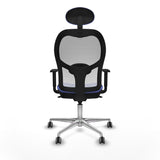The Jorquera office chair with headrest from the renowned brand Piqueras y Crespo is an ergonomic and functional solution specially designed for intensive work, allowing up to 8 hours of daily use without losing comfort or support. This chair stands out for its fixed headrest and adjustable lumbar support, key features that promote proper posture and reduce back fatigue during long shifts. It includes 1D armrests that provide additional support and a synchronised tilt mechanism with 5 positions, allowing comfortable adjustment of both the backrest and seat inclination, which can be locked according to user preference. Its design incorporates a fixed backrest with a breathable mesh frame that ensures continuous ventilation, ideal to prevent heat and moisture buildup. The seat features a reinforced interior with PVC and 50 mm injected polyurethane foam with a density of 50 Kg/m3, ensuring durability and prolonged comfort. The base is made of polished aluminum with five spokes and a 720 mm diameter, providing stability and sturdiness, while the 65 mm nylon rubber-coated wheels with steel axle and pin enable smooth movement on parquet floors. Additionally, it includes a chrome lift piston that allows the seat height to be adjusted between 48 and 61 cm to suit different heights and ergonomic preferences. Its finish in light blue mesh and fabric combines aesthetics and functionality, giving the workspace a modern and attractive look. The Jorquera chair not only meets the basic needs of an office chair with armrests but also offers a user experience designed especially for the modern woman seeking aesthetic design, lumbar support, and comfort in a product certified under the UNE-EN-1335 standard, which guarantees quality and safety in office furniture products. In short, the Jorquera chair is a highly recommended option for those requiring ergonomic comfort, durability, and functional design in a demanding work environment.