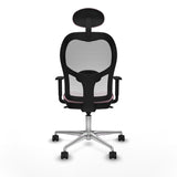The office chair with headrest 1D086N1 from the brand Piqueras y Crespo is an ergonomic solution designed to provide comfort and functionality in intensive work environments, supporting up to 120 kg and intended for continuous use of up to 8 hours daily. This desk chair features a 5-position synchro mechanism that allows adjustment of both the backrest and seat tilt, adapting to individual needs to ensure correct posture. Its fixed backrest includes a fixed headrest that offers additional neck support and has an adjustable lumbar support to help maintain the natural curve of the spine, important to prevent discomfort from long hours at the computer. The seat is made with an internal PVC honeycomb-reinforced structure and high-density injected polyurethane foam (50 mm and 50 Kg/m3), ensuring high comfort and durability. The mesh/fabric finish provides a breathable feel, avoiding heat buildup and improving ventilation during prolonged use. Additionally, its pink color design adds a pleasant and distinctive touch to the workspace without sacrificing professionalism. It includes 1D armrests for greater arm support and comfort, and an adjustable height system that allows ergonomic adaptation to the user, with a seat height range between 48 and 61 cm and a maximum total height of 129 cm. The polished aluminum five-star base with 65 mm nylon wheels guarantees stability and silent mobility, contributing to an efficient work environment. The chair complies with UNE-EN-1335 standards, certifying its quality and ergonomic suitability for offices. Its design combines durability and functionality in a product aimed at improving the daily work experience. This Piqueras y Crespo office chair represents a balanced option that merges ergonomic features with an attractive and practical finish for any work setting.