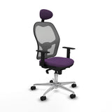 The office chair with headrest 1D086N1 from the brand Piqueras y Crespo is an ergonomic solution designed for intensive workdays of up to 8 hours, ideal for those who need comfort and support during daily tasks. This office chair stands out for its purple color and multiple adjustable features that promote a healthy, personalized posture, such as height adjustability and adjustable lumbar support, which conforms to the natural curve of the spine to reduce the risk of lower back pain. It includes a fixed headrest that provides extra cervical support, complementing the overall ergonomic backrest and helping to reduce neck tension during long hours seated. Its frame features 1D adjustable arms that offer arm support, enhancing comfort and preventing shoulder and forearm discomfort. The synchro mechanism with 5 positions allows adjustment of both seat and backrest tilt, facilitating posture changes according to user needs. The seat has high-density injected foam (50 mm and 50 kg/m3) ensuring lasting comfort, while the backrest is covered with a breathable mesh finish that promotes ventilation and prevents heat buildup even in warm environments or after extended use. Its base is made of polished aluminum with five spokes and a 720 mm diameter, providing stability and durability, and is equipped with 65 mm nylon wheels for smooth and quiet movement on any office surface. It supports a maximum weight of 120 kg and complies with UNE-EN-1335 certification, guaranteeing quality and ergonomics according to European standards. Height adjustment is done via a chrome piston for precise seat height control between 48 and 61 cm, while the total chair height ranges from 121 to 129 cm. Its dimensions are designed to provide comfort without taking up excessive space, with a total width of 68 cm and a seat width of 48 cm. This model combines durable materials and practical design with features focused on postural health, making it a balanced choice for offices prioritizing ergonomics and comfort during daily work. In short, the Jorquera 1D086N1 office chair by Piqueras y Crespo offers a functional, ergonomic design with quality components suitable for demanding users seeking an adjustable, breathable seat equipped with a headrest and armrests to improve workplace well-being.
