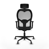 The office chair with headrest 1D036G2 from Piqueras y Crespo is a model designed to offer an ergonomic and functional experience, ideal for intensive use shifts of up to 24 hours, supporting a maximum weight of 120 kg. This desk chair stands out for its fixed backrest that provides stability, along with an adjustable 2D headrest that offers optimal neck support, enhancing comfort during long work periods. The adjustable lumbar support adapts to the natural curve of the spine, promoting healthy posture and reducing muscle fatigue. It features a 5-position synchro mechanism that allows adjustment of both the backrest and seat tilt, as well as an integrated height adjustment system to fit different users and needs. The model includes 1D arms that provide additional arm support, increasing comfort during use, and its frame has a 5-spoke nylon base with 65 mm parquet wheels, ensuring smooth and silent movement on all floor types. The upholstery combines mesh and grey fabric, breathable materials that improve ventilation to prevent heat buildup and maintain a constant fresh feeling. The injected high-density foam with 50 mm thickness and 50 Kg/m3 density ensures a comfortable seat that prevents fatigue, while the overall design, certified by UNE-EN-1335 and BIFMA, reflects a commitment to quality and safety. Its dimensions allow a seat width of 48 cm and an adjustable total height between 121 and 134 cm, perfectly adapting to different workspaces. This model presents itself as a robust, comfortable office chair technically prepared for prolonged use, combining functionality and aesthetics in an ideal balance for professionals requiring an ergonomic product with adjustable backrest and headrest.