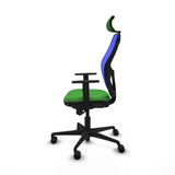 The Jorquera office chair from the renowned manufacturer Piqueras y Crespo, model 1D036N2, is an ergonomic and functional solution designed for those who need comfort and support during long working hours, ideal for home office or professional spaces. This chair stands out for its frame with adjustable height between 48 and 61 cm, allowing the seat to adapt to different users and desks, while its total height ranges from 121 to 134 cm. It is made with high-quality materials, combining a fixed backrest with a breathable mesh/fabric finish that promotes ventilation, helping reduce heat and moisture, thus increasing comfort during extended use. Its design includes a 2D adjustable headrest that provides extra neck support, essential to avoid cervical strain, along with an adaptable lumbar support system that adjusts to the natural curve of the spine to prevent discomfort and improve posture. It features 1D arms with height adjustment, offering forearm support and contributing to a stable and relaxed posture. Its five-position synchro mechanism allows simultaneous tilting of the backrest and seat, with secure locking at any point, enabling the user to find the most comfortable and ergonomic position. The base, made of five-spoke nylon with a 680 mm diameter and 65 mm wheels designed for smooth and stable movement, provides mobility and durability, supporting up to 120 kg. The seat is made of high-density injected polyurethane foam (50 mm and 50 Kg/m3), ensuring a comfortable and durable surface. All this complies with UNE-EN-1335 and BIFMA certifications, guaranteeing quality and safety standards for professional use. Its attractive green color adds a modern and distinctive touch to offices or home workspaces, while the set of features such as adjustability, breathability, and lumbar support position this chair as a solid option for those seeking performance, comfort, and ergonomics in their office furniture. In short, the Jorquera by Piqueras y Crespo is a technical and durable choice that meets the demands of intensive use throughout full workdays, facilitating a healthy and efficient working experience.