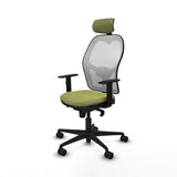 The Jorquera office chair by Piqueras y Crespo is designed to provide comfort and support during long work sessions, ideal for intensive use of up to 24 continuous hours and a maximum load capacity of 120 kg. This model features a 2D adjustable headrest for proper cervical support, complemented by a 1D adjustable lumbar support that promotes posture and reduces lower back discomfort. The frame includes a fixed backrest made with a PVC outer frame and finished in breathable olive green mesh, allowing good air circulation to improve thermal comfort. The seat has a reinforced PVC core with high-density injected polyurethane foam (50 mm and 50 kg/m3), combined with a 1 mm thick durable plastic outer surface, ensuring durability and comfort during continuous use. This chair is equipped with 1D height-adjustable armrests for ergonomic adaptation, while its synchron mechanism with 5-position adjustment allows tilting the backrest and seat to achieve an optimal posture. It also offers seat height adjustment from 48 to 61 cm, adapting to different desks and settings. The sturdy and stable base is made of black nylon with 5 spokes and a diameter of 680 mm, equipped with 65 mm nylon casters for smooth and quiet movement, ideal for dynamic work environments. The BIFMA and UNE-EN-1335 certifications guarantee quality and compliance with international ergonomic and safety standards. Weighing 18 kg, the Jorquera green chair with headrest combines practicality, style, and functionality, designed for those seeking a reliable product that merges attractive design with advanced ergonomic features to enhance the home office or corporate environment experience. This chair is a technical and versatile option within the office chairs with adjustable headrest segment.
