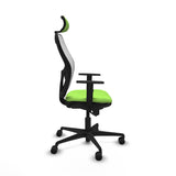 The Jorquera office chair with headrest from the brand Piqueras y Crespo, model 1D036N2, is designed to provide an ergonomic and functional solution for workspaces requiring high performance, suitable even for intensive 24-hour use. This chair features adjustable and height-regulated seating, allowing comfortable adaptation for different users, with a maximum seat height of 61 cm and a minimum of 48 cm, as well as an adjustable total height between 121 and 134 cm. It includes a 2D adjustable headrest that offers optimal support for the neck and head, complemented by an adaptable lumbar support that promotes healthy posture and prevents fatigue during long sessions. The backrest is fixed, but the seat and backrest have a synchronised mechanism with 5 tilt positions, facilitating ergonomic adjustment according to comfort needs during telework or meetings. The 1D arms provide forearm support, relieving tension in shoulders and neck. The design incorporates a structure with a 5-spoke nylon base measuring 680 mm in diameter and 65 mm nylon casters that ensure silent and stable mobility on various surfaces. The upholstery in mesh/pistachio finish offers breathability, keeping the user cool during long workdays. The high-density injected polyurethane foam (50 mm, 50 kg/m³) in the seat provides lasting comfort, preventing fatigue. Its design combines functionality, durability (supports up to 120 kg), and modern style, integrating perfectly into office environments, home telework desks, or meeting rooms. With UNE-EN-1335 certification and BIFMA-certified components, this chair meets quality and safety standards for professional use. The Jorquera pistachio chair is a practical and ergonomic option for those seeking an office chair that offers comfort, durability, and adaptability in contemporary workspaces.
