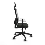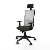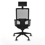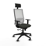 The office chair with headrest 1D066G1 from Piqueras y Crespo is an operational seat designed for intensive and prolonged professional use, ideal for demanding work environments that require lasting comfort and functionality. This office chair features a fixed headrest that provides additional cervical support, along with an adjustable lumbar support that adapts to the curvature of the back, preventing common discomfort during long shifts. Its structure includes a Sincro/Traslack mechanism, allowing synchronized adjustment of the backrest and seat, enabling adjustable tilt with three locking positions and a 5 cm horizontal seat slide to achieve the most ergonomic posture possible. The 1D arms offer forearm support, contributing to a more relaxed and comfortable position. The design features a pyramidal base made of fiberglass-reinforced nylon with five spokes measuring 640 mm in diameter, equipped with 65 mm rubber-coated wheels suitable for parquet floors, allowing smooth and silent mobility. The 51 cm wide seat is made of laminated wood covered with 50 mm injected polyurethane foam with a density of 50 Kg/m3, ensuring comfort and durability without deformation, while the backrest uses a breathable 100% PES mesh that promotes ventilation. The seat height is adjustable between 46 and 53 cm, and the total height ranges from 128 to 143 cm to accommodate different user needs and heights. It has a maximum weight capacity of up to 120 kg and complies with UNE-EN-1335 certification, ensuring quality and current ergonomic standards. The black finish and modern materials make this chair fit well in any office or workspace, combining functionality with a sober, professional design. The Horna chair by Piqueras y Crespo is a practical solution for those seeking an ergonomic, durable, and adaptable seat, designed to provide comfort during 24-hour continuous use in dynamic and demanding work environments.