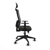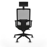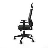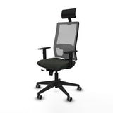 The office chair with headrest 1D066G1 from Piqueras y Crespo is an operational model designed to provide ergonomic support and comfort during long work sessions, suitable for continuous use up to 24 hours. It features a five-spoke nylon and fiberglass pyramid base with a diameter of 640 mm, ensuring stability and durability to support up to 120 kg. The seat includes laminated wood with high-density injected polyurethane foam (50 mm and 50 Kg/m³), covered by an outer plastic shell and upholstered with a breathable 100% PES mesh that promotes ventilation, keeping freshness during use. The backrest has a fixed headrest that provides additional neck support, while the Sincro/Traslack mechanism allows synchronized and height-adjustable tilt of the seat and backrest, with three-point locking and a 5 cm horizontal seat slide for precise posture adjustment. It also offers an adjustable lumbar support that adapts to the natural curve of the spine, helping prevent discomfort and promoting healthy posture. The 1D adjustable armrests provide optimal arm support, enhancing the chair’s overall ergonomics. Seat height is adjustable between 46 and 53 cm, and total height ranges from 128 to 143 cm, allowing comfortable adaptation to different user heights and desks. For easy mobility without damaging floors, it has 65 mm rubberized nylon casters, suitable for parquet and other floor types, with sturdy steel axles and pins. This chair, finished in black and certified under UNE-EN-1335, combines functionality, durability, and ergonomics, making it a practical and technical solution for professionals working long hours at a desk. The 1D066G1 represents a balanced choice for those demanding comfort, lumbar support, and versatility in office or home work environments.