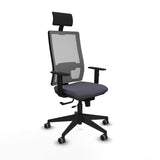 The office chair with headrest 1D066G1 from the brand Piqueras y Crespo, model Horna, is a practical solution designed for intensive use of up to 24 hours, ensuring comfort and durability in demanding work environments. This office chair in dark grey features a fixed headrest that provides cervical support, complemented by an adjustable lumbar support that promotes proper ergonomic posture, reducing fatigue during long shifts. The seat and backrest are equipped with a Sincro/Traslack mechanism, allowing synchronized and independent adjustment of the backrest and seat tilt, with the option to lock the position in three different points. Additionally, the seat has a horizontal sliding adjustment of up to 5 cm to fit various body types. The 1D adjustable armrests offer extra forearm support, enhancing comfort. The seat height is adjustable from 46 to 53 cm, while the overall height ranges from 128 to 143 cm, adapting to multiple users. This chair is made with high-quality materials, featuring a laminated wood seat core with injected polyurethane foam of 50 mm thickness and 50 Kg/m³ density, ensuring lasting comfort and durability. The backrest includes a 100% PES breathable mesh, promoting ventilation and a fresh feeling during extended use. The chair’s pyramidal base is made of fiberglass-reinforced nylon, with five spokes and a diameter of 640 mm, providing stability and strength, and is fitted with 65 mm diameter rubber-coated wheels for smooth and silent movement on parquet or similar floors; the model also offers an option for wheels with brakes for secure anchoring when needed. The functional and contemporary design of this chair makes it an aesthetic addition that integrates easily into any professional space. It complies with UNE-EN-1335 certification, ensuring it meets European standards for dimensions and ergonomics. Weighing approximately 20 kg and supporting a maximum load of 120 kg, the Horna by Piqueras y Crespo is a technical and reliable choice for those needing an ergonomic, adjustable, and durable office chair for long work sessions. This combination of technical features and quality materials positions this model as a solid option for professional environments demanding high performance and continuous comfort.