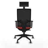 The office chair with headrest 1D066G1 by Piqueras y Crespo is a model designed to provide comfort and functionality in demanding work environments, recommended for up to 24 continuous hours of use. This office chair features an adjustable seat height that can be set between 46 and 53 cm, adapting to different heights and desk types, while the total height ranges from 128 to 143 cm. It is equipped with a 1D adjustable armrest that offers ergonomic support for the arms, helping to improve posture during long shifts. Its backrest includes a height adjustment system and an adjustable lumbar support that allows personalized back support to reduce fatigue and muscle strain. The Sincro/Traslack mechanism enables adjustable inclination of the backrest and seat, with three-point locking and up to 5 cm horizontal seat slide, providing comfortable movement tailored to the user’s needs. Its structure combines a robust pyramidal base made of nylon and fiberglass with five spokes measuring 640 mm in diameter, finished in black, along with a semi-directional black lift piston that ensures stability and durability with a maximum load capacity of 120 kg. The 65 mm rubberized nylon wheels allow smooth and silent movement on parquet or other delicate surfaces, preventing floor damage. The seat consists of a laminated wood base with injected high-density polyurethane foam (50 mm and 50 Kg/m³), covered externally by 1 mm thick plastic, providing durability and comfort. The backrest, made of 100% PES breathable mesh, promotes proper ventilation to avoid heat buildup during extended use. The distinctive color of this chair is a dark orange, combining a modern and functional design ideal for offices or workspaces with ergonomic and aesthetic requirements. Overall, this Horna model from Piqueras y Crespo brings advanced adjustment features, quality materials, and a design aimed at offering support and comfort for daily work, ensuring postural health and durability for users demanding professional performance in their office furniture.