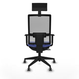 The office chair with headrest model 1D066G1 from Piqueras y Crespo is an ergonomic and functional solution designed for intensive use of up to 24 hours daily, ideal for coworking spaces or long hours at the computer. This office chair stands out for its 1D armrests that provide comfortable, adjustable support, along with a fixed headrest offering cervical support to maintain proper posture during work. Its backrest features tilt and height adjustment, allowing the user to adapt the position for improved comfort and ergonomics. The seat, with adjustable height ranging from 46 cm up to 53 cm, has a base made of laminated wood covered with 50 mm injected polyurethane foam at 50 Kg/m³ density, ensuring a firm and comfortable seat. The structure includes a 5-spoke nylon and fiberglass pyramid base with a 640 mm diameter, combined with a black semi-directional lift piston, guaranteeing stability and efficient mobility. The 65 mm rubberized nylon wheels are specially designed for parquet floors, protecting the surface while facilitating movement. The seat’s outer covering is 1 mm thick plastic, while the backrest is made of 100% PES breathable mesh in light blue, providing ventilation and preventing heat buildup. This chair supports a maximum weight of 120 kg and complies with UNE-EN-1335 standards, ensuring quality and safety for daily use. Its elegant and functional light blue design fits various environments, offering technical features suitable for demanding settings without sacrificing aesthetics. The combination of an adjustable lumbar support, the option to lock the tilt in three positions, and a 5 cm horizontal seat slide optimizes lumbar and postural comfort customization. This chair represents a complete and robust option for users requiring constant ergonomic support without sacrificing functionality or durability. Overall, the Horna with fixed headrest and 1D arms is a technical and practical alternative for those seeking an ergonomic, durable office chair suitable for dynamic and extended work environments.