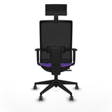The Horna model 1D066G1 office chair with headrest by Piqueras y Crespo is designed for intensive use of up to 24 continuous hours, making it an optimal solution for professionals and students who need comfort and support during long sessions. This chair features a fixed headrest that provides extra neck support and helps maintain proper ergonomic posture. It includes 1D arms offering stable forearm support, helping reduce muscle fatigue. Its Synchro/Traslack mechanism allows synchronized adjustment of the backrest and seat tilt, with three locking positions, plus a 5 cm horizontal seat slide to adapt posture to user needs. The backrest is height adjustable, enabling personalized ergonomic adjustment during work or study, and has a adjustable lumbar support to enhance comfort and prevent discomfort. The base structure is a 5-spoke nylon and fiberglass pyramidal base with a 640 mm diameter, complemented by a semi-directional black lift piston that allows seat height adjustment, with a maximum height of 53 cm. It also comes with 65 mm nylon rubberized wheels for parquet floors, facilitating mobility without damaging the surface. The seat combines a laminated wood interior covered with 50 mm injected polyurethane foam at 50 Kg/m³ density for lasting comfort, with a 1 mm thick rigid plastic exterior, while the backrest is made of a 100% PES breathable mesh, improving ventilation and preventing heat buildup during extended use. Its lilac color design adds a modern, distinctive touch to the workspace and complies with UNE-EN-1335 standards, ensuring quality and safety. The seat width is 51 cm and the overall chair width is 64.5 cm, offering generous comfort without taking up too much space. With a maximum capacity of 120 kg, this chair combines functionality, durability, and ergonomics for those seeking a professional and versatile office or study solution. Overall, the Horna chair with fixed headrest and 1D arms is a technical and comfortable piece that meets the demands of users requiring durability and precise adjustments to maintain a healthy posture during long hours.
