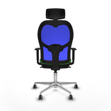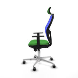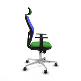 The Jorquera 1D086G2 office chair with headrest from Piqueras y Crespo is an operational model designed to provide comfort during long work hours, suitable for intensive use of up to 24 continuous hours. It features a fixed backrest structure that offers stability, complemented by a 2D adjustable headrest that provides ergonomic neck support, reducing fatigue during teleworking or extended desk tasks. Its system includes a 1D lumbar support that promotes a healthy posture, essential to prevent back discomfort. The synchro mechanism with 5 tilt positions allows adapting the dynamic posture of seat and backrest according to user needs, while the adjustable seat height, ranging from 48 to 61 cm, ensures proper ergonomic fit, accompanied by 1D adjustable armrests to improve arm and shoulder support. Its breathable green mesh finish facilitates ventilation, avoiding heat and moisture buildup, which increases comfort during prolonged use. The polished aluminum 5-star base with a diameter of 720 mm, along with 65 mm rubber-coated nylon wheels for parquet floors, guarantee stable and silent mobility on various surfaces. The seat has a reinforced interior of high-density injected polyurethane foam (50 mm thick and 50 Kg/m3), providing comfortable and durable support, while the perimeter is reinforced to ensure strength and longevity. It supports a maximum capacity of up to 120 Kg, making it a versatile option for different user profiles. With ample dimensions, such as a total width of 68 cm, and a design that combines functionality with an elegant aesthetic, this chair fits perfectly in home or office work environments, offering a balanced combination of ergonomics, durability, and comfort. The Jorquera by Piqueras y Crespo is a complete and technical solution for those seeking an office chair that prioritizes postural support, adaptability, and intensive use without sacrificing an attractive, modern design.