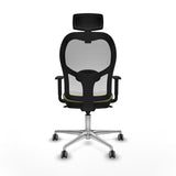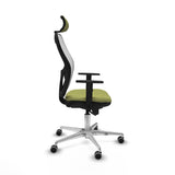 The office chair with headrest 1D086G2 from Piqueras y Crespo is an ergonomic solution designed to provide comfort and functionality during long work sessions, allowing intensive use of up to 24 continuous hours. This model stands out for its sturdy frame that supports a maximum weight of 120 kg and its olive green finish, adding an elegant and professional touch to any corporate space. The chair features an adjustable height system, allowing seat height adjustment from 48 cm to 61 cm, ensuring proper posture for different users. Its synchro mechanism with 5-position lock enables synchronized adjustment of the backrest and seat tilt, promoting postural dynamics and reducing fatigue. The backrest is fixed and combines a PVC outer frame with a breathable mesh that improves air circulation, maintaining freshness even during extended use. The seat consists of a 1 mm reinforced plastic base and 50 mm thick injected polyurethane foam with a density of 50 Kg/m³, ensuring comfort and durability. For additional support, it includes a 2D adjustable headrest providing cervical support, and a 1D lumbar support that protects the lower back, helping maintain healthy spinal alignment. The 1D armrests offer ergonomic forearm support, improving posture and reducing muscle tension at the workstation. The base is made of polished aluminum with 5 spokes and a 720 mm diameter, equipped with a chrome piston for smooth height adjustment, and 65 mm rubber-coated nylon wheels designed to protect delicate floors like parquet, offering quiet and safe movement. The construction certified according to UNE-EN-1335 standard ensures compliance with ergonomic and safety requirements for office chairs. With dimensions allowing a total width of 68 cm and a design suited for various professional environments, the Jorquera chair represents a balanced choice for those needing reliable, ergonomic, and versatile furniture for teleworking or traditional offices. This chair combines quality, adjustability, and comfort with a functional design that meets current workplace postural care needs.