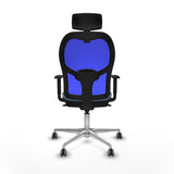 The Piqueras y Crespo office chair with headrest model 1D086G2 is designed for intensive use of up to 24 hours, making it an optimal choice for those who need comfort and support during long hours at the computer. This office chair stands out for its adjustable and regulable height, adapting to the ergonomics of different users, with a seat height range between 48 and 61 cm and a total height varying from 121 to 134 cm. Its exclusive frame includes a 2D headrest to provide personalized cervical support and reduce neck tension, as well as an adaptable 1D lumbar support that follows the natural curve of the spine, promoting correct posture and preventing muscle discomfort. The 1D armrests offer additional ergonomic support, while the fixed backrest ensures stability during continuous use. The seat is made with a high-density injected polyurethane foam interior (50 mm and 50 Kg/m3) reinforced with PVC on its base and frame, combining durability and prolonged comfort. Its outer material of breathable mesh/fabric in sky blue facilitates air circulation, maintains a pleasant temperature, and enhances comfort during long sessions. The polished aluminum 5-star base with a diameter of 720 mm provides strength and style, complemented by a chrome piston that allows smooth seat height adjustment and 65 mm rubberized nylon wheels for parquet floors, ensuring silent and agile movement without damaging the surface. With a maximum capacity of 120 kg, this chair combines functionality, durability, and modern design, adapting to professional environments that require mobility and postural support. Certified under UNE-EN-1335 standards, it guarantees recognized quality and ergonomic compliance. In summary, the Jorquera by Piqueras y Crespo is a complete solution for those seeking a sturdy, adaptable, and comfortable office chair designed to maximize well-being during work.