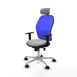 The Jorquera office chair with headrest from the brand PIQUERAS Y CRESPO is a seat designed for intensive use up to 24 hours, ideal for professionals who require comfort and ergonomics during long work shifts. This model features a 5-position synchro mechanism that allows simultaneous adjustment of the backrest and seat tilt, offering a personalized experience adapted to various postures. The seat height is fully adjustable, ranging from 48 to 61 cm, making it easy to find the optimal position according to the user's height, while the total height adjusts between 121 and 134 cm. Its backrest is fixed but includes a 1D lumbar support that helps maintain correct posture, reducing common lower back fatigue in work environments. Additionally, the 2D adjustable headrest provides extra neck support, increasing comfort during long sitting hours by preventing cervical strain. The 1D armrests offer ergonomic support and are designed with simple adjustment to fit the user's position, improving posture and reducing shoulder pressure. The seat and backrest combine breathable mesh and light grey faux leather, promoting proper ventilation and preventing heat buildup, while the internal seat structure is reinforced with 50 mm injected polyurethane foam with a density of 50 Kg/m³ for durable and resilient comfort. The base consists of a 5-star polished aluminum frame with a diameter of 720 mm, ensuring stability and strength, and features 65 mm nylon casters that enable smooth and quiet movement on various surfaces. Its design blends functionality and aesthetics, offering a modern and professional style that fits easily into any workspace. With a maximum load capacity of up to 120 kg and UNE-EN-1335 certification, this chair is a complete option for those seeking ergonomics, durability, and adaptability in an office setting. In short, the Jorquera chair with headrest represents a practical and technical solution for maximum comfort throughout the workday.