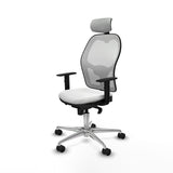 The Jorquera office chair by Piqueras y Crespo is a model designed to provide comfort and ergonomic support during long work sessions, intended for intensive use of up to 24 continuous hours with a maximum capacity of 120 kg. This chair stands out for its white color and functional design that fits any professional environment, featuring a 2D adjustable headrest and a 1D lumbar support that help maintain proper posture and reduce fatigue in the dorsal area. Its frame includes 1D adjustable arms that offer extra support for the forearms and allow a relaxed, healthy posture. The seat and backrest are made with a combination of mesh and breathable fabric, improving airflow and providing freshness during use. The injected foam of 50 mm thickness and 50 Kg/m3 density ensures a comfortable and durable seat, while the backrest is fixed to provide stability throughout the day. To adjust posture, it incorporates a synchronised mechanism with 5 positions that allows regulating the synchronized tilt of the backrest and seat, along with an adjustable seat height ranging from 48 to 61 cm, easily adapting to different users and desks. Its polished aluminum 5-star base with a 720 mm diameter ensures strength and stability, equipped with 65 mm nylon wheels with steel axle and pin for smooth movement on any surface. The chrome lift piston adds a quality and durable detail to the height adjustment. The inner seat includes a honeycomb reinforcement and a 1 mm PVC base for greater durability, while the outer frame of the backrest uses PVC, offering a resistant and lightweight finish. With dimensions suited for professional workspaces, its total width is 68 cm and seat width is 48 cm, making it a versatile chair for various users. Additionally, it meets UNE-EN-1335 certification, confirming its ergonomics and safety according to European standards. In short, the Jorquera chair combines precise adjustments, quality materials, and a breathable design to optimize the experience during long hours at the computer. It is a practical and ergonomic solution for work environments requiring maximum functionality and comfort in office furniture.