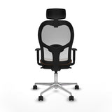 The Jorquera 1D086N2 office chair with headrest from Piqueras y Crespo is an ergonomic solution designed for intensive use of up to 24 hours daily, with a maximum weight capacity of 120 kg, ideal for professional environments where comfort and functionality are priorities. This model features an elegant white color that fits modern and professional settings, equipped with a headrest adjustable in two dimensions providing extra neck support to help reduce muscle tension during long workdays. It includes a 5-position synchro mechanism that simultaneously adjusts the backrest and seat tilt to suit the user’s posture needs, along with a seat height adjustable from 48 to 61 cm for personalized comfort. The 1D arms offer simple adjustment for ergonomic forearm support, promoting relaxation and preventing repetitive strain injuries. The backrest, made with a PVC outer frame and breathable mesh fabric, ensures optimal ventilation for comfort during extended use, while the seat interior contains injected high-density polyurethane foam (50 mm, 50 kg/m3) providing a cushioned, durable, and comfortable base. The structure rests on a sturdy polished aluminum 5-star base with a 720 mm diameter, complemented by 65 mm nylon wheels coated in rubber for smooth and quiet movement on any floor type. Additionally, the Jorquera model complies with UNE-EN-1335 standards, guaranteeing recognized quality and safety for office furniture. This design prevents common issues like involuntary seat descent thanks to its chrome office lift piston with stable and secure adjustment. Overall, this operational chair combines durability, versatility, and comfort to optimize performance in demanding workspaces, maintaining healthy posture and offering personalized adaptability. The Jorquera chair is a technical and long-lasting option that integrates perfectly into professional offices requiring reliable and functional furniture.