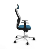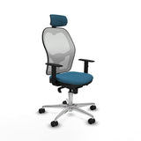 The Jorquera office chair with headrest by Piqueras y Crespo is designed for those who need functional and durable furniture, especially for intensive use up to 24 continuous hours and a maximum load capacity of 120 kg. This office chair stands out for its ergonomics and adjustability, featuring a 5-position synchro mechanism that allows adjustment of both the backrest and seat tilt, ensuring a posture adapted to the user’s needs. Its adjustable headrest provides cervical support, enhancing comfort during long working hours, while the lumbar support ensures proper spine alignment to prevent discomfort. The chair also includes 1D armrests, offering additional, adjustable support for the arms, promoting a natural posture and reducing muscle tension. Made with a blend of mesh and breathable fabric, it helps ventilation and prevents heat buildup, keeping the user cool and comfortable. Its fixed backrest provides stability, complemented by a sturdy seat with high-density injected foam (50 mm and 50 Kg/m³) for a comfortable sitting experience. The structure rests on a polished aluminum 5-star base with a 720 mm diameter, equipped with 65 mm nylon wheels with steel axles and bolts, allowing smooth and quiet movement on any floor type. The seat height is fully adjustable, ranging from 48 to 61 cm, and the total chair height varies between 121 and 134 cm, adapting to different users and spaces. Its main color is white, offering a modern and versatile design that fits various work environments. This chair complies with UNE-EN-1335 standards, guaranteeing quality and safety in office furniture products. Overall, the Jorquera chair by Piqueras y Crespo offers a balance of ergonomics, functionality, and durability for those who require a seat that supports long workdays with comfort and stability.