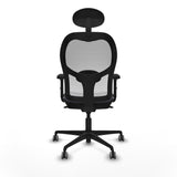 The office chair with headrest Model 2D036G1 from Piqueras y Crespo is an ergonomic solution designed to provide comfort and functionality during intensive work sessions of up to 8 hours. This office chair features a modern design in dark grey that fits perfectly in any workspace, combining style and professionalism. It is made with high-quality materials, such as breathable mesh and 50 mm injected foam with a density of 50 Kg/m3, ensuring adaptable support and optimal ventilation to prevent heat buildup. It includes a fixed headrest that provides extra neck support and an adjustable lumbar support, essential elements to maintain proper posture and prevent back discomfort during long working hours. Its fixed backrest and seat with reinforced PVC interior and polyurethane foam offer durability and firmness, while the structure uses a 5-spoke nylon base with a 680 mm diameter, certified according to UNE-EN-1335, ensuring stability and strength for users up to 120 Kg. The chair incorporates a 5-position synchro mechanism that allows adjusting the tilt of the backrest and seat, along with a height-adjustable gas lift, making it easy to adapt the chair to different sizes and postural preferences. The 2D armrests provide flexible support adjustable in two dimensions, enhancing comfort during prolonged use. Additionally, it is equipped with 65 mm rubber-coated nylon wheels, designed to roll smoothly on parquet floors without damaging them. The set of technical features, such as the 48 cm wide seat, maximum total height of 129 cm, and minimum height of 121 cm, make this chair a functional and ergonomic piece of furniture that promotes good posture and comfort in professional environments. In short, the 2D036G1 office chair with headrest from Piqueras y Crespo is a solid and technical choice for users seeking durability, precise adjustment, and comprehensive support during long work sessions.
