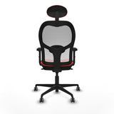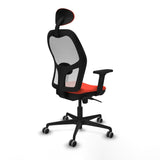 The office chair with headrest model 2D036G1 from Piqueras y Crespo is an ergonomic solution designed to provide comfort and support during long work hours, with a maximum load capacity of 120 kg. This chair stands out for its adjustable and height-regulable feature, allowing it to fit different users and work environments perfectly, as well as its 2D armrests that offer height and angle adjustment, promoting optimal posture and reducing muscle fatigue. Its fixed headrest provides constant cervical support, combined with an adjustable lumbar support (1D) that helps maintain correct spinal alignment, essential for people with scoliosis or other specific ergonomic needs. The fixed backrest and seat with high-density injected foam (50 mm and 50 Kg/m3) ensure a comfortable and durable seating experience, while the dark orange breathable mesh finish guarantees proper ventilation to prevent heat and moisture buildup. The five-star nylon base with 65 mm rubber-coated parquet wheels enables smooth and silent movement across various floor types, enhancing mobility and flexibility at the workstation. Certified under the UNE-EN-1335 standard and with approved components, this chair meets high safety and ergonomic standards, making the Jorquera a reliable model for intensive use of up to 8 hours daily. Its set of technical features, combined with a design focused on postural well-being, positions it as a suitable option for users demanding quality, customizable adjustment, and durability in a professional office chair. This ergonomic chair from Piqueras y Crespo represents an optimal balance between anatomical support and functionality for the work environment.