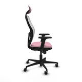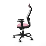 The Jorquera 2D036G1 office chair by Piqueras y Crespo is designed to offer an optimal balance of ergonomics, functionality, and design for demanding work environments. Specifically created as a fixed headrest office chair, it supports intensive use of up to 8 continuous hours and accommodates a maximum weight of 120 kg, ensuring robustness and versatility for various users. Its structure features a 5-star nylon base with a 680 mm diameter and a black lift piston allowing adjustable seat height from 48 cm to 61 cm, with a total height ranging between 121 and 129 cm, adapting to different posture needs. The backrest includes a 5-position synchro mechanism that synchronizes backrest and seat movement for a dynamic and comfortable posture, while an adjustable lumbar support and a fixed headrest provide extra support for the lumbar and cervical areas, key to preventing discomfort during long work sessions. Additionally, its 2D armrests are adjustable in height and angle, promoting a healthy posture and better office ergonomics. The chair is upholstered in a breathable mesh/fabric material in pink, which enhances ventilation and prevents heat buildup, increasing comfort during extended use. The seat consists of injected polyurethane foam with a density of 50 kg/m3 and a thickness of 50 mm, ensuring durable and consistent cushioning. The 65 mm rubberized nylon wheels are designed for parquet floors, enabling smooth and silent mobility without damaging the surface. This model is certified according to UNE-EN-1335 standards and complies with BIFMA, guaranteeing quality and safety. Overall, the Jorquera chair by Piqueras y Crespo is an ergonomic and sturdy solution, especially suited for users needing a functional operational chair with full neck and back support, ideal for professional and prolonged workspaces.