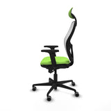 The office chair with headrest model 2D036G1 from Piqueras y Crespo is an ergonomic solution designed to provide comfort and functionality during intensive workdays of up to 8 hours daily. This task chair features a fixed headrest that offers extra neck support and an adjustable lumbar support that adapts to the natural curve of the spine, promoting healthy posture and reducing fatigue. Its fixed backrest provides stability, while the synchronised mechanism with 5 positions allows simultaneous adjustment of the backrest and seat to ensure a personalized ergonomic posture. Equipped with 2D arms, adjustable in height and angle, it offers proper arm support, increasing daily comfort. The seat, with 50 mm injected foam and a density of 50 Kg/m3, ensures even weight distribution, avoiding uncomfortable pressure points. The seat height is adjustable, ranging from 48 to 61 cm, with a total backrest height between 121 and 129 cm, adapting to users of different heights. Its frame features a 5-spoke nylon base and 65 mm rubber-coated wheels, ideal for delicate floors like parquet, ensuring quiet and safe mobility. The pistachio color finish combined with a modern, breathable mesh/fabric design adds not only functionality but also an attractive aesthetic touch to any workspace. With a maximum load capacity of 120 kg and quality certifications such as UNE-EN-1335 and BIFMA, this chair combines strength, durability, and ergonomics in a product designed for professionals who value adaptability and well-being during long sitting hours. The Jorquera chair represents a balanced choice between quality and comfort for office environments that demand functional and ergonomic task furniture.
