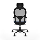 The office chair with headrest 2D036G2 by Piqueras y Crespo is an ergonomic and functional solution designed to provide comfort during long work hours, suitable for intensive 24-hour use and with a maximum capacity of 120 kg. This model combines a retro design with navy blue finishes that add elegance to any professional or study space. It features an adjustable structure including a headrest adjustable in two dimensions (2D), as well as 2D arms whose height and angle can be adapted to the user’s needs, offering additional support for a healthy posture. The backrest, designed for stability with its fixed system, includes an adjustable lumbar support that helps maintain correct spinal alignment, reducing fatigue and back discomfort. Its synchro mechanism allows adjustment of the seat and backrest tilt in 5 different positions, facilitating optimal adjustment according to activity or posture. For enhanced comfort, the seat is made with high-density injected foam (50 Kg/m³) and 50 mm thickness, ensuring a firm and durable seat without losing softness. The surface combines breathable mesh and fabric, allowing proper ventilation and preventing heat buildup. Additionally, the chair features a height-adjustable system between 48 and 61 cm at the seat, and a total adjustable height from 121 to 134 cm to fit different users and desks. Its nylon base with five spokes and a diameter of 680 mm guarantees stability and durability, while the 65 mm rubberized wheels are designed to glide smoothly and quietly over delicate floors like parquet without damaging them. Weighing approximately 18 kg and certified under UNE-EN-1335 and BIFMA, this chair meets recognized quality and safety standards in the office furniture sector. The combination of features such as multidimensional adjustment of the headrest and arms, lumbar support, breathable material, and robust design make it an ideal piece for users seeking a comfortable, ergonomic, and durable office chair for professional or home use. This chair is a balanced choice for those requiring durability and functionality without sacrificing refined style.
