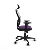 The 2D036G2 office chair with headrest from the brand Piqueras y Crespo is designed to provide advanced ergonomic support and comfortable use during long shifts, even up to 24 continuous hours. This office chair in purple stands out for its durability, supporting a maximum weight of 120 kg, making it suitable for users seeking strength and longevity. It features a 2D adjustable headrest that offers extra neck support, improving posture and reducing cervical strain. Additionally, it includes an adjustable lumbar support to help maintain back health during extended use. The 2D armrests allow height and angle adjustment, promoting a comfortable position tailored to individual needs. Its synchro mechanism with 5 locking positions enables combined adjustment of the backrest and seat, while the seat height is adjustable from 48 to 61 cm, adapting the chair to different body types and work desks. The seat is made with a high-density polyurethane injected foam interior (50 mm and 50 Kg/m³), ensuring lasting comfort and shape recovery, with a reinforced plastic outer finish for added durability. The fixed backrest features a breathable mesh structure that ensures optimal ventilation, preventing heat buildup during long work sessions. The five-star nylon base with a 680 mm diameter provides stability, complemented by 65 mm rubber-coated nylon wheels specially designed for parquet floors, allowing smooth movement without damaging the surface. This chair, certified under UNE-EN-1335 and BIFMA standards, is a functional and versatile option for both students and professionals seeking an affordable solution with advanced ergonomic features. The purple color and mesh/fabric finish offer a modern style that fits various work environments. Overall, the Jorquera by Piqueras y Crespo is a desk chair that combines comfort, personalized adjustment, and durability for users demanding a reliable and ergonomic product for their workspace.