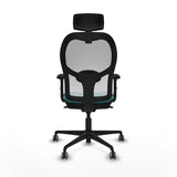 The Jorquera office chair from manufacturer Piqueras y Crespo is an office chair designed for intensive use of up to 24 continuous hours, ideal for those who need comfort and functionality during long shifts. Featuring an ergonomic design in turquoise color, this chair includes a 2-dimensional adjustable (2D) headrest that provides adaptable cervical support for different needs, along with a 1D adjustable lumbar support that helps maintain a healthy posture, reducing fatigue and back strain. Its frame has a 5-position synchro mechanism allowing simultaneous adjustment of the backrest and seat tilt with locking, making it easy to find the optimal working posture. The seat and backrest are made of a combination of mesh and breathable fabric that promotes ventilation, keeping you cool even during extended use. This chair features 2D adjustable armrests for height and angle, enhancing comfort and support while in use. Additionally, the seat height is adjustable from 48 cm to 61 cm, adapting to different users and desk types. The chair’s base is made of nylon with five spokes and a diameter of 680 mm, equipped with 65 mm rubber-coated wheels for smooth and silent movement on parquet or other delicate floors, ensuring mobility and stability. It supports a maximum weight of 120 kg, thanks to a robust frame certified according to UNE-EN-1335 standards and BIFMA quality norms, guaranteeing durability. The seat has a reinforced PVC interior and injected high-density polyurethane foam (50 mm thick, 50 kg/m3), providing firmness and long-lasting comfort. Its modern and functional design, combined with a vibrant turquoise finish, makes it suitable for both professional workspaces and demanding home environments. In short, the Jorquera office chair is a versatile and ergonomic choice that meets the needs of users seeking comfort, adaptability, and durability during long working hours.