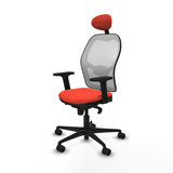 The Jorquera office chair model 2D036N1 by Piqueras y Crespo is an ergonomic option designed to provide support and comfort during intensive work sessions of up to 8 hours. Intended for users who need personalized adjustment, this ergonomic chair features a synchro mechanism with 5 positions that allows simultaneous regulation of the backrest and seat tilt, promoting a healthy posture. It stands out for having a fixed headrest that offers extra neck support, while the adjustable lumbar support adapts to the natural curvature of the spine, minimizing fatigue and discomfort from long sitting periods. Its 2D adjustable armrests in height and angle help align arms and shoulders correctly, enhancing overall ergonomics. The frame includes a 5-star 680 mm nylon base with BIFMA certification, ensuring stability and resistance up to a 120 kg maximum weight capacity. The seat, with a width of 48 cm and adjustable height between 48 and 61 cm, is complemented by a fixed breathable mesh backrest with fabric finish that ensures proper ventilation during use, preventing odors and heat buildup. The 50 mm, 50 Kg/m3 injected foam provides lasting comfort, while the 65 mm nylon casters allow smooth and quiet movement on common office surfaces. The dark orange color design adds a modern, distinctive touch without sacrificing functionality. Additionally, the chair is certified UNE-EN-1335, endorsing it as compliant with European ergonomics and safety standards. Its combination of technical features, durable materials, and ergonomic adjustments makes it suitable for teenagers, tall users, and those seeking an office chair with a headrest that promotes healthy use and correct posture during daily work. In summary, the Jorquera chair by Piqueras y Crespo is a functional and versatile solution that meets the demands of professional environments where ergonomics and comfort are priorities.