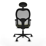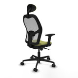 The office chair with headrest 2D036N1 from Piqueras y Crespo is an ergonomic option designed to provide comfort and functionality during workdays of up to 8 hours daily. This office chair in olive green features a fixed headrest that supports the cervical area, complemented by an adjustable lumbar support that helps maintain a healthy posture and reduce fatigue. Its adjustable and height-regulable seat allows positioning between 48 cm and 61 cm, enabling a personalized ergonomic fit. Additionally, it includes 2D arms with height and angle adjustment, improving arm support and relieving muscle tension. It is equipped with an innovative synchro mechanism with 5 tilt positions that lets you recline the backrest to favor different postures throughout the day, always maintaining stability thanks to its fixed backrest. The structure uses 50 mm injected foam with 50 Kg/m3 density offering optimal adaptability and durability, covered by a breathable mesh finish that enhances ventilation and thermal comfort during prolonged use. The 65 mm nylon wheels, mounted on steel axles and bolts, ensure smooth and silent movement, while the five-spoke nylon base with a 680 mm diameter guarantees stability and strength with BIFMA certification and UNE-EN-1335 compliance. Its narrow and functional design makes it an ideal ergonomic chair for small spaces, maintaining a total width of 68 cm and a seat width of 48 cm, adapting to various office environments without sacrificing comfort or support. With a maximum capacity of up to 120 kg, this chair is a balanced solution for those seeking a combination of ergonomics, durability, and sober style within the office chairs with headrest category. In short, the Piqueras y Crespo 2D036N1 chair offers a comfortable and adaptable work experience, designed to improve productivity and well-being during long workdays.